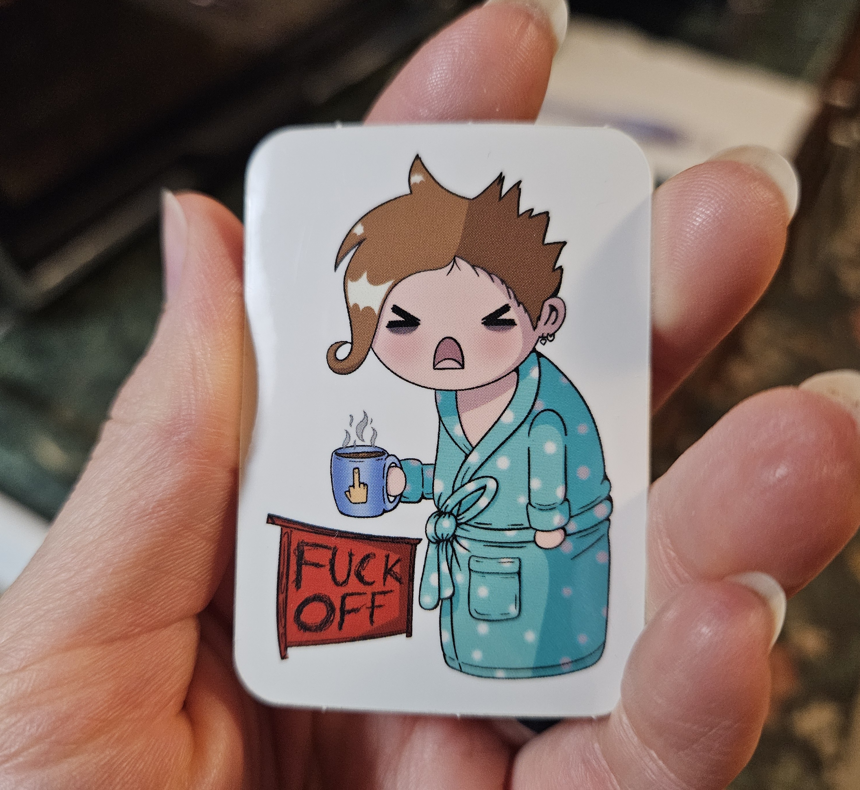 This relatable sticker is designed after my typical morning. ‘Don’t talk to me until I’ve had my coffee.’ This funny and in your face sticker is sure to stylize anything you put it on! ~Vinyl Sticker ~1.7’’ x 2.4’’